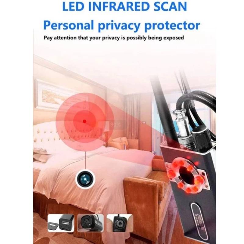 Wireless Camera in the hotel A must have device you need to take with you when you travel. If you feel unsecured on unfamiliar surroundings, especially when you stay in hotels, Airbnb, motels etc, our K18?Anti-spyware?Detector will help you to pinpoint all the cameras or Eavesdropping?to avoid any sneak shot or Eavesdropping.