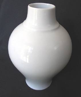 A classic white porcelain vase made in West Germany by Kaiser in the 1970s or 1980s. Condition good -- no chips or cracks. Height 200 mm; base diameter 73 mm; rim diameter 50 mm.