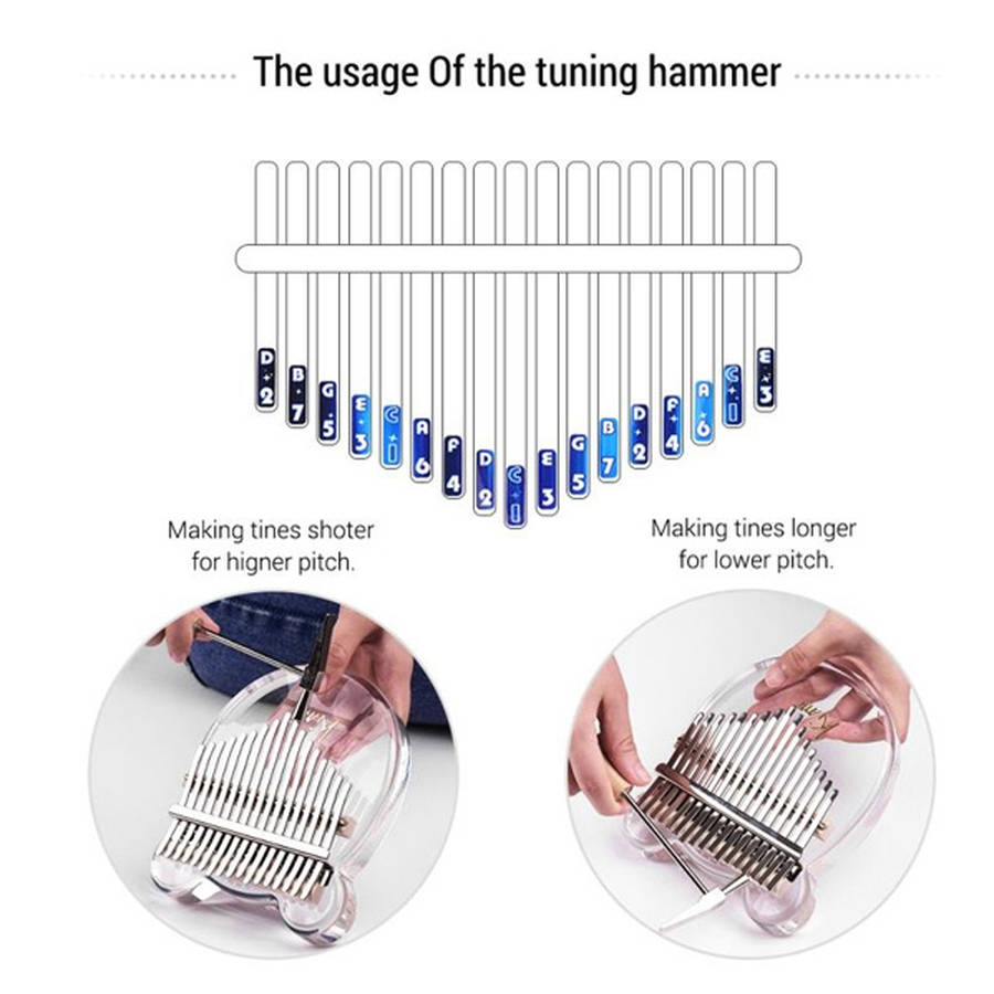 - Easy play and quick learning, just holding it in your hands and plucking the tines with your thumbs to create clear and melodious sounds; with a mini hammer for convenient tuning.
