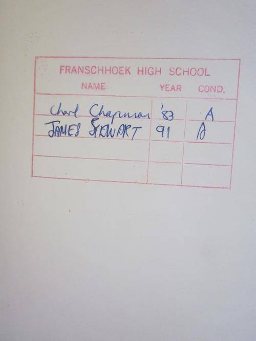 derde druk 1982 hardeband met stofomslag 269 bladsye, die stofomslag het een of twee klein merkies, die hardeband is goed maar het rakverweer aan die ondekrant, geel sellotape merke voor en agter in boek, stempel van skool voor in boek, die teks is skoon en die binding goed- geen oorsese versending