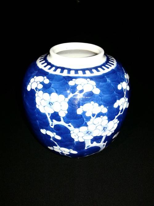 A BLUE AND WHITE KANGXI REVIVAL VASE FROM THE GUANGXU PERIOD (QING DYNASTY) CHINA CIRCA 1900. BEARING A FLORAL DEPICTION AGAINST A HEAVILY APPLIED COBALT BLUE WAVY BACKGROUND. MARK ON UNDERSIDE BEARING THE EMPTY DOUBLE CIRCULAR BLUE LINES. THIS VASE IS IN AN EXCELLENT STATE OF PRESERVE AND ONLY BEARS IMPERFECTIONS THAT ARE DUE TO THE KILN AND FIRING PROCESS.