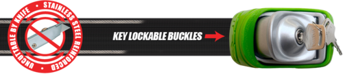 Simple to use, they work the same way as a regular set of tie-downs, however they have the added benefits of key lockable buckles and reinforced straps that cannot be cut by knife.