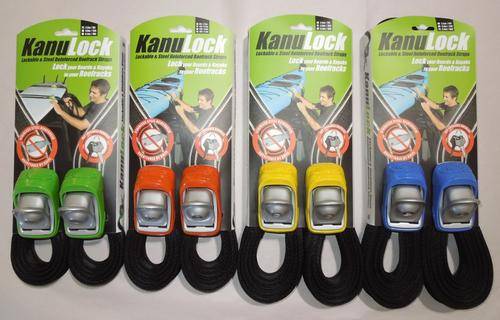 Kanulock Lockable Tie downs stop opportunistic theft. A thief cannot simply walk off with your board or kayak, the buckles can be locked securely by a key, your board or kayak cannot be slid out, the straps are reinforced with stainless steel cables and can’t be cut by a knife. Kanulocks are a great theft deterrent.