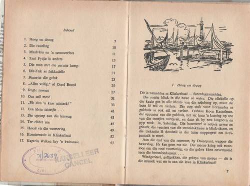 TWEE HARDEBAND EX BIBBOEKIES MET STOFJASSE. HIERDIE BOEKE IS BAIE DEUR DIE LEERDERS GENIET EN GENIET EN VINGERMERKIES IS SIGBAAR. BOEK NOMMER EEN HET 'N ROOI INKKOL, MAAR ANDERSINS IS DIE INHOUD NOG DUIDELIK! LIGTE VERGELING IS TEENWOORDIG.