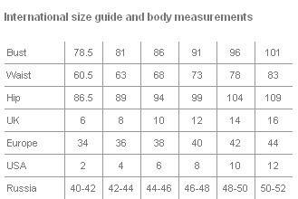 PLEASE MAKE SURE YOU USE THIS MEASURING CHART IN CENTIMETERS MEASURES YOUR BUST, WAIST ANS HIPS TO IDENTIFY YOUR CORRECT UK SIZE, AS NO REFUND WILL OFFERED IF INCORRECT SIZE WILL BE CHOSEN!
