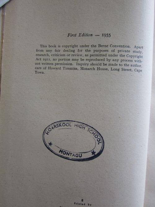 dustjacket has a few marks and a small white sticker at the bottom of the spine, hardcover good but there is a small tear at the bottom of the spine front, there are stamps etc in the book, pages have gone brown due to old age, text is clean and binding good but at the back you can see the net of the binding , shipping R25 in RSA- no overseas shipping
