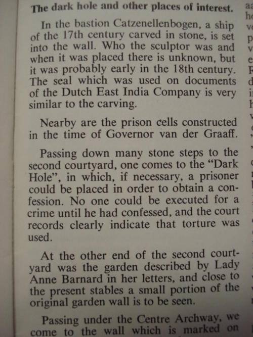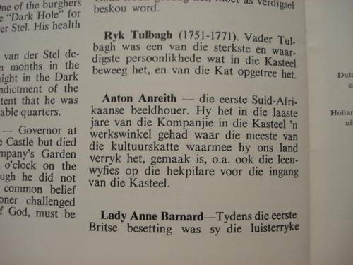 This is a booklet consisting of 24 pages. Paper cover printed at "Salesian Press", not sure of the date of print but it was possibly in the 1950's. It contains alot of information regarding the Castle of the Cape of Good Hope being the 3rd oldest monument worthy of mention. It describes the ground plans of the castle and its strategic setting. It has numerous b/w photos of various parts of the castle.