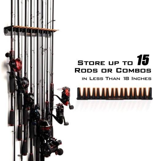 KastKing Patented V15 Vertical Fishing Rod Holder – Wall Mounted Fishing Rod Rack, Store 15 Rods or Fishing Rod Combos in 18 Inches, Great Fishing Pole Holder and Rack