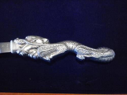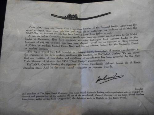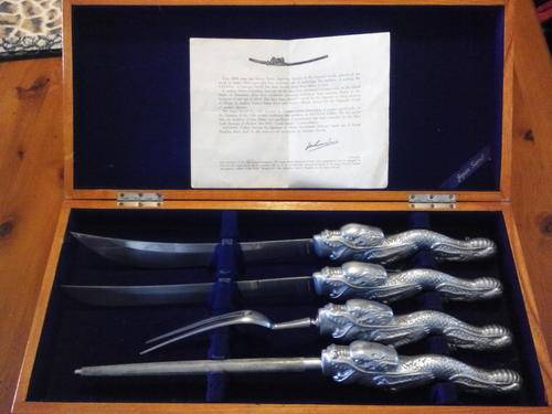A solid heavy carving set from a renowned Japanese master swordsman Hakusui Inami, made of the finest stainless steel. excellent condition, a must for any meat festival. Truly heavy good quality item. A superb Christmas gift to carve up that turkey.
