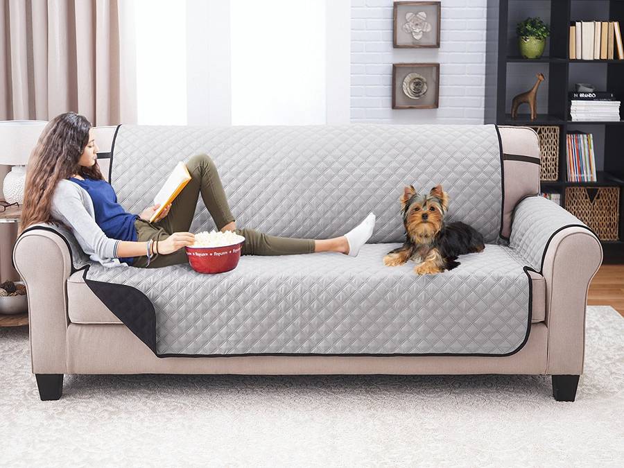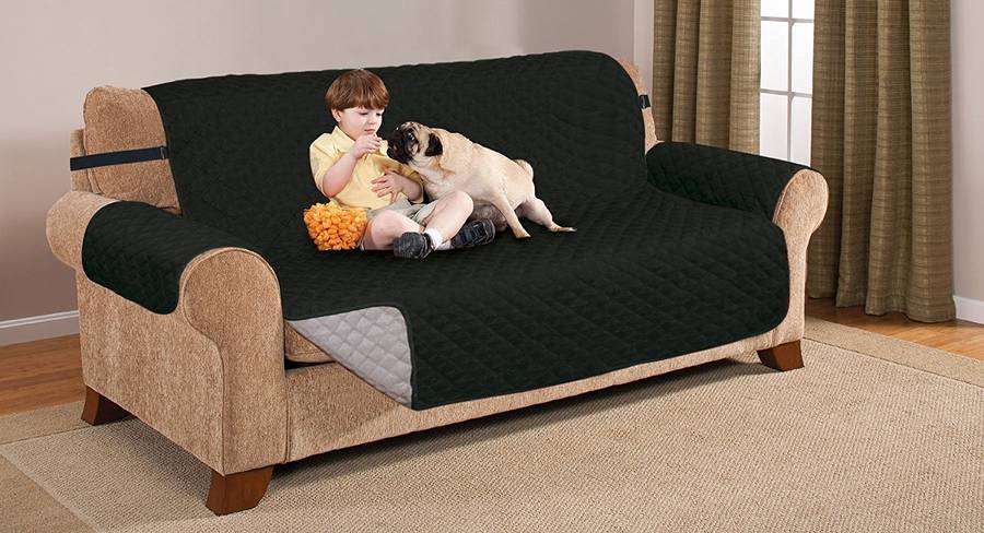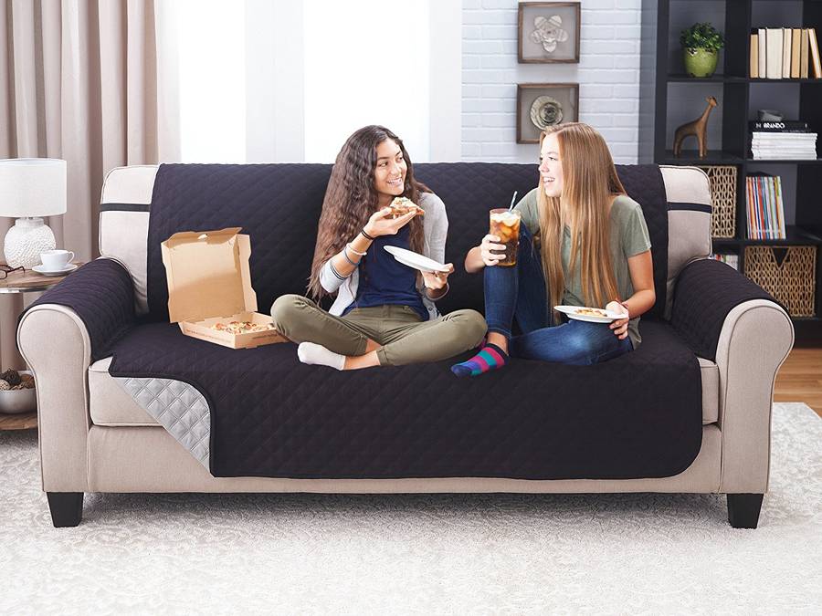 KC-PCP1 Reversible Quilted Furniture Protector Cover Recliner So... (SIZE 3: DOUBLE | COLOR.: BLACK)