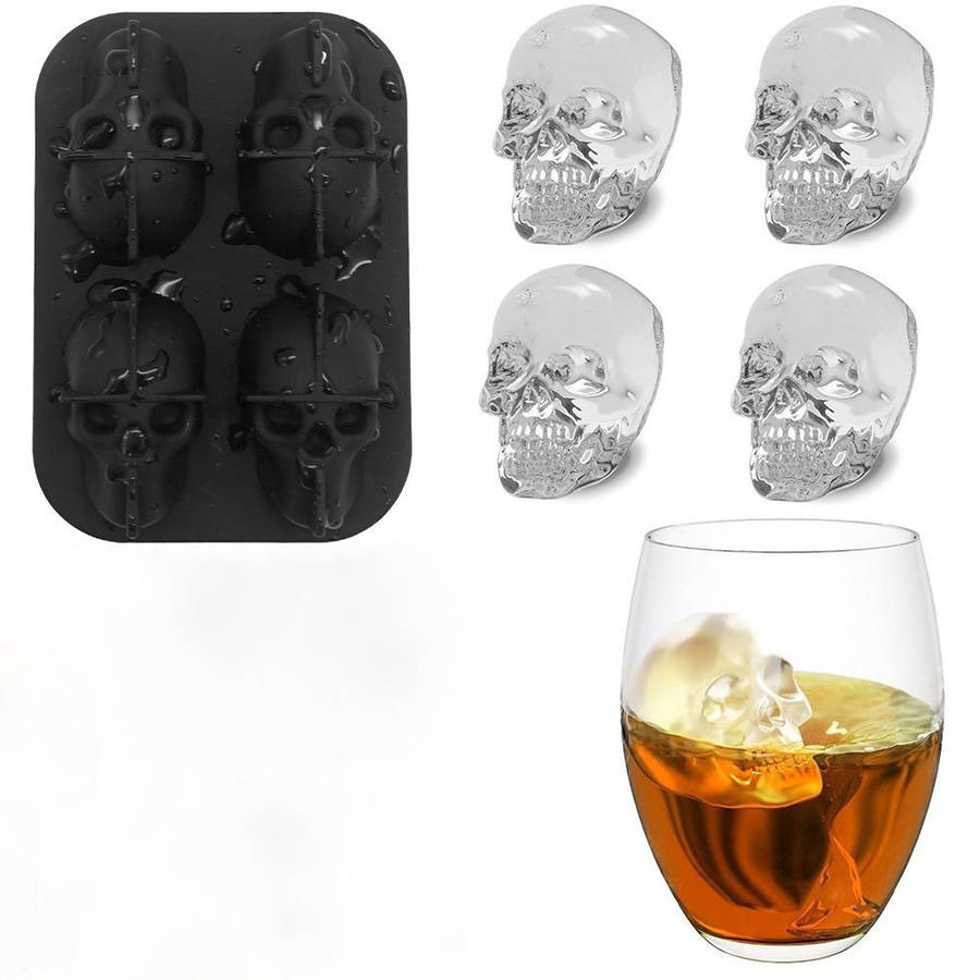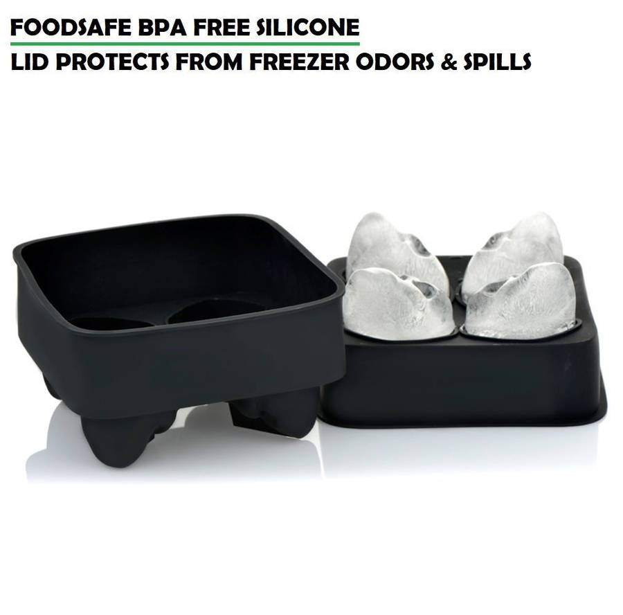 First ice cube mold that makes four giant iced skulls in the world! These iced skulls are realistic-looking, slowly melting and fun to make! MAKES YOUR DRINK LOOK AWESOME & KEEPS IT COOL LONGER – Great for House Parties, Bars, Restaurants, Beaches, Holiday Events and Holiday Gifts. Long-lasting ice cubes for Whiskey, Cocktail, Iced Coffee, Iced Tea, Fruit Juice, Punch, Soda Pop and Water. Also Good for Cho- colate, Soap, Candy Making, Figure Model Making as well as Baking. FLEXIBLE HIGH GRADE SILICONE – Non-Toxic, Food grade, Leak-free, Microwave safe, Oven safe, Dishwasher safe silicone ice cube tray with lid. This durable and flexible silicone ice tray won't crack or break like plastic ice tray; Easy to fill, remove and clean.