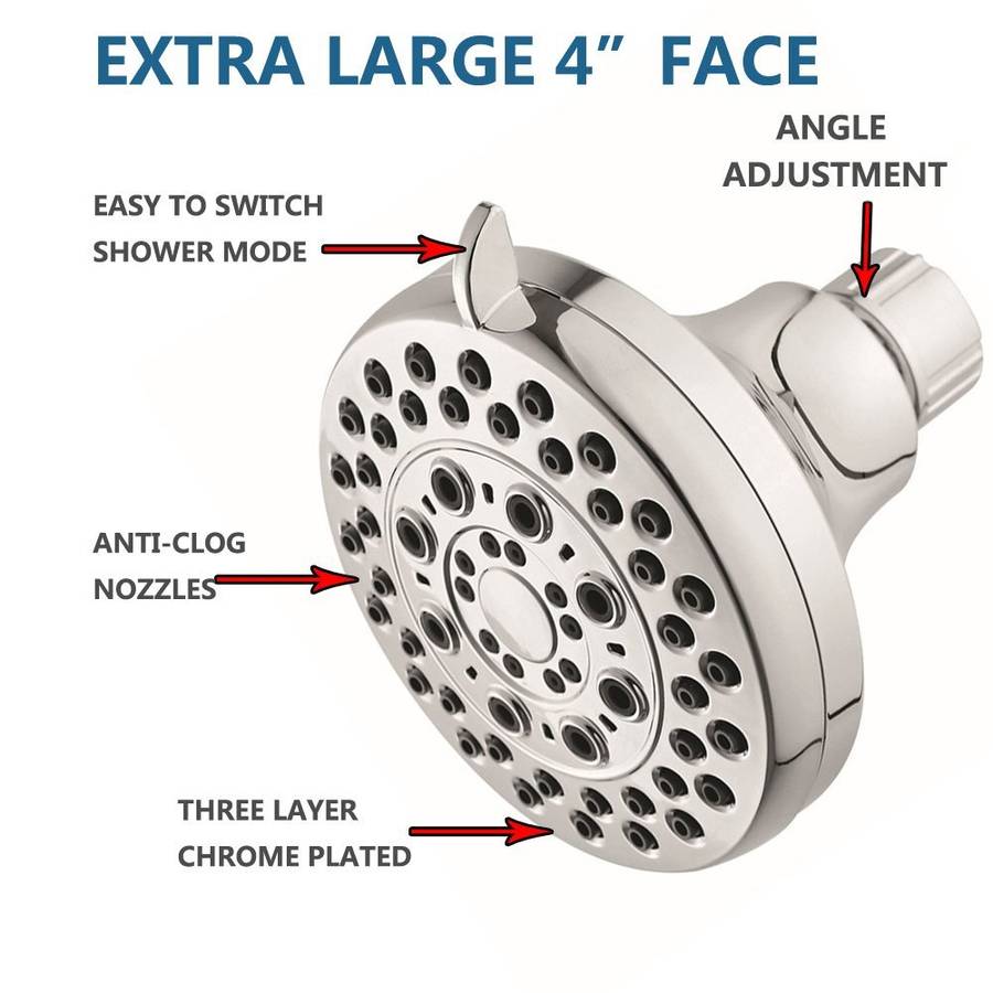 Chrome Finish 4 inch High Pressure Shower Head Wall Mounted Showerheads with 5-mode Showering