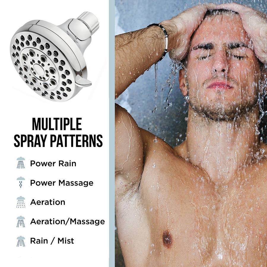 Features : HIGH QUALITY ABS BODY: Chrome Finish , Self-cleaning Silicone nozzles and Angle Adjustable Brass Swivel joint that can perfectly fit any bathroom 5-SETTING :Including Power, Rain Power Massage, Aeration, Aeration&Massage , Rain&Mist SUPERIOR WATER PRESSURE:Provided superior 2.0gpm water flow with 80 precision high pressure jets. To deliver consistent high pressure shower even under low pressure plumbing applications. Quick and easy installation: Installs in miuntes with Step by Step Installation Instructions The shower head has a 1/2" threaded connection, which is the standard connection size in the USA