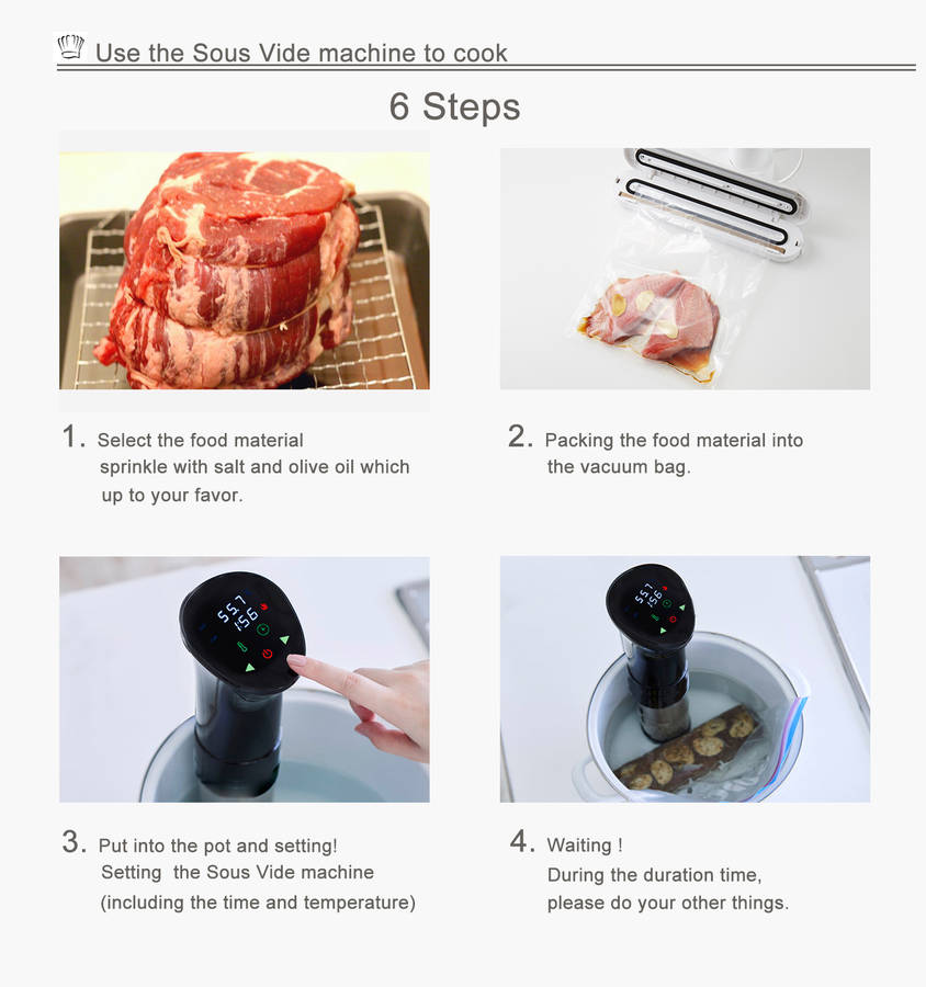 water-filled pot, put your food in a sealable bag, and set the time and temperature. The Precision Cooker heats and circulates the