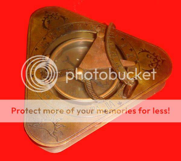 One of the most beautiful sundial compasses you have ever seen, large 4.5 inch sidesr. Extremely unusualy chamfored triangle shape. This top-quality limited edition unit is a one of a kind beauty to behold. The sundial can be folded inwards and is as accompanied by a hinged curved scale that helps set your local latitude angle. The combo of sundial and compass is of great utility as the magnetic compass allows the sundial to be oriented North. The unit comes with an inbuilt fluid level that helps you adjust the three beveled legs to precisely level the sundial. This compass features a needle lock mechanism to protect the compass's jeweled bearing when being transported. This is very important since most low end compasses tend to give faulty readings due to a shift in alignment of the needle during transport. Local time is marked by the sun's shadow cast by the extendible vane. The entire unit can be folded inwards before repacking. The latitude scale and the sundial vane are hinged to lay flat for compact storage.