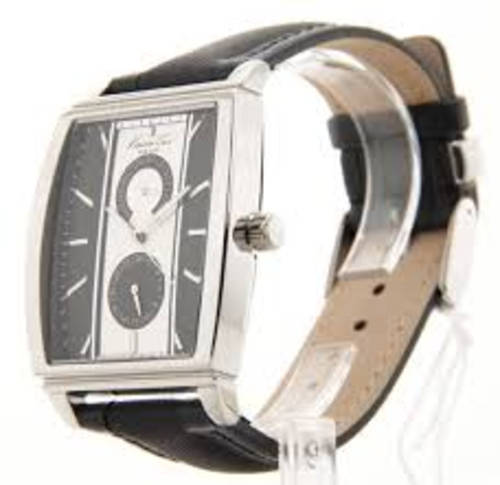 45mm Rectangle shaped stainless steel bezel. Black & silver face