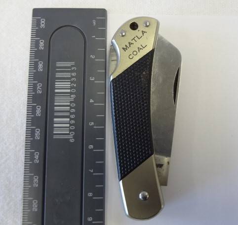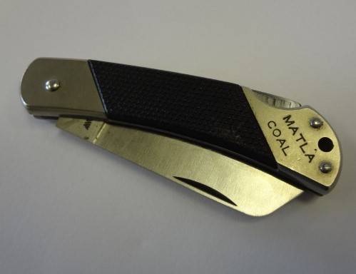 Kershaw pocket knife advertising for Matla Coal given to P.J. Joubert - as per photo