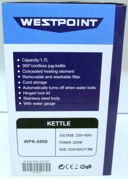 KETTLE WESTPOINT  (Stainless steel body 1.7L)