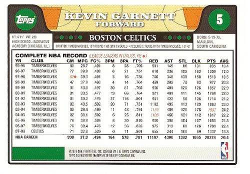 KEVIN GARNETT / BOSTON CELTICS - TOPPS 08/09 NBA CARD