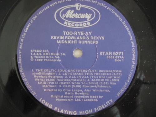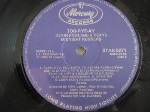 On offer is this KEVIN ROWLAND & DEXYS MIDNIGHT RUNNERS - "TOO-RYE-AY" 1982 MERCURY LONG PLAY LP WITH THE ORIGINAL INNER SLEEVE IN GREAT CONDITION INCLUDING THE TRACK "COME ON EILEEN"