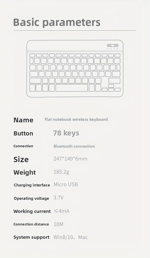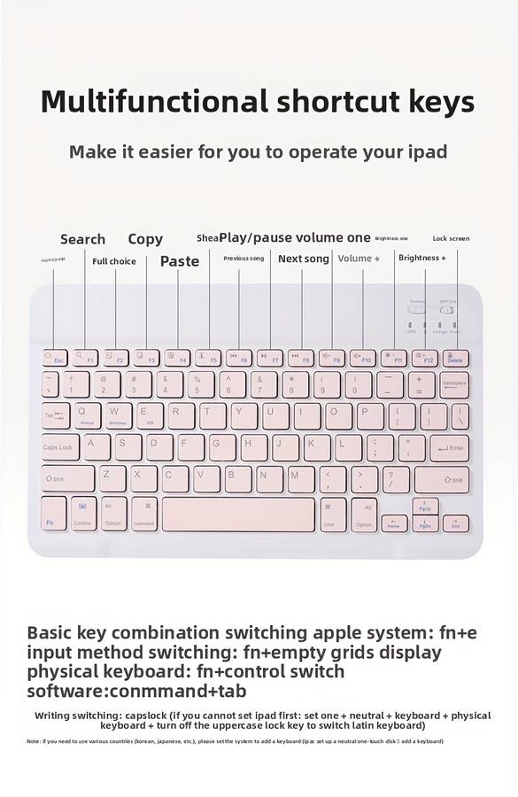 keyboard color 10 inch keyboard add wireless Bluetooth add TypeC charging pink keyboard color 10 inch keyboard add wireless Bluetooth add TypeC charging pink Ultra-Thin Wireless Wireless Keyboard for Laptop and for ipad - Portable, Rechar Wireless Property:wireless Battery Properties:Rechargeable Battery Rechargeable Battery:Lithium Battery-Polymer Special Features:Ergonomic Accessory:USB Cable Battery Capacity (mAh):150 Product Charging Port:Type-C Port Charging Does It Support Coordinated Fast Charging?:No Does It Include A Charger?:No Maximum Rated Power:5W Minimum Rated Power:2.5W Power Mode:USB Charging Operating Voltage:기36V Item ID:ML2924704 Origin:Guangdong,China