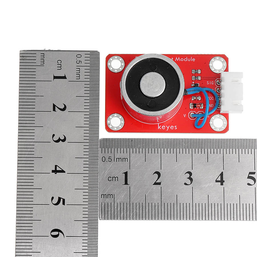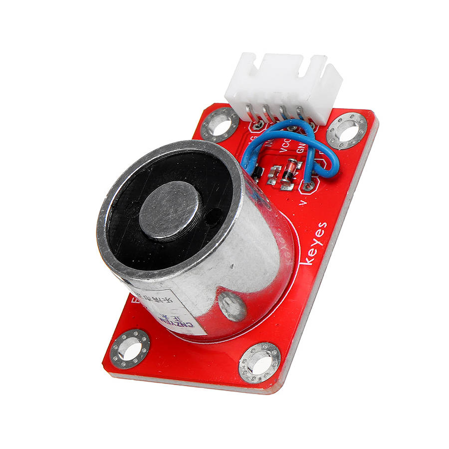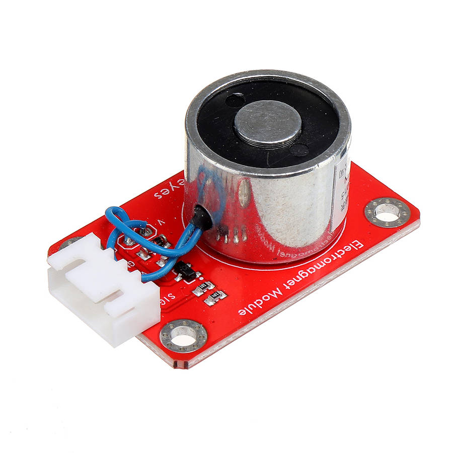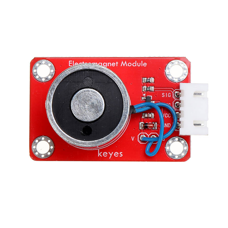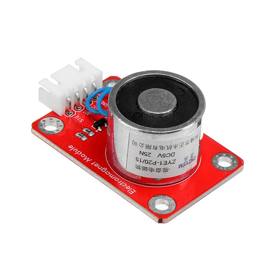 ZYE1-P20/15 electromagnet module mainly contains an electromagnet, which is a kind of magnet that generates a magnetic field by current. It uses the principle of electromagnetism, and a straight metal wire is used to pass current, then a circular magnetic field will be generated in the space around the wire. In order to concentrate the magnetic field, the coil in the electromagnet is wound into a coil, and many wires are arranged side by side, so that all the magnetic field of the coil passes through the center of the coil, forming a strong magnetic field there, enabling it to absorb 1 kg of ferromagnetic material . When in use, we can control the on and off of the electromagnet by controlling the high and low levels of the signal terminal of the module. Also connect the SIG terminal of the module to the PWM port of the arduin board, set the PWM value, and adjust the magnetic field of the module. The larger the PWM value, the larger the magnetic field. For wiring, we also distribute a 4pin wire, one end of the line is a white anti-reverse insertion interface (matching with the anti-reverse insertion white terminal on the module), and the other end is a 4pin Dupont wire female interface.