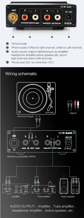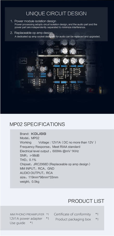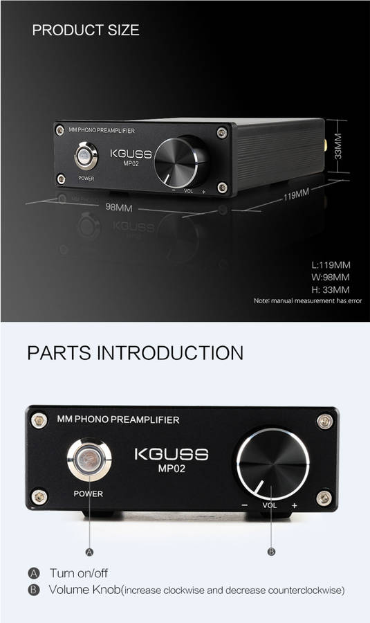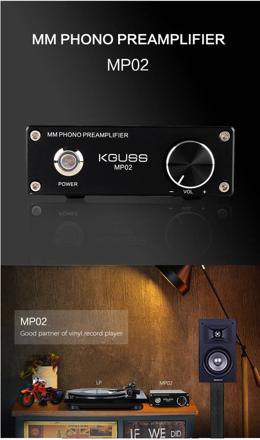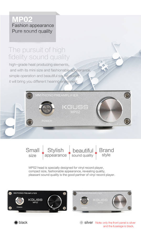 KGUSS MP02 LP Vinyl Record Turntable Player PHONO Preamplifier Amp... (ADAPTOR: EU | COLOR1: SILVER)