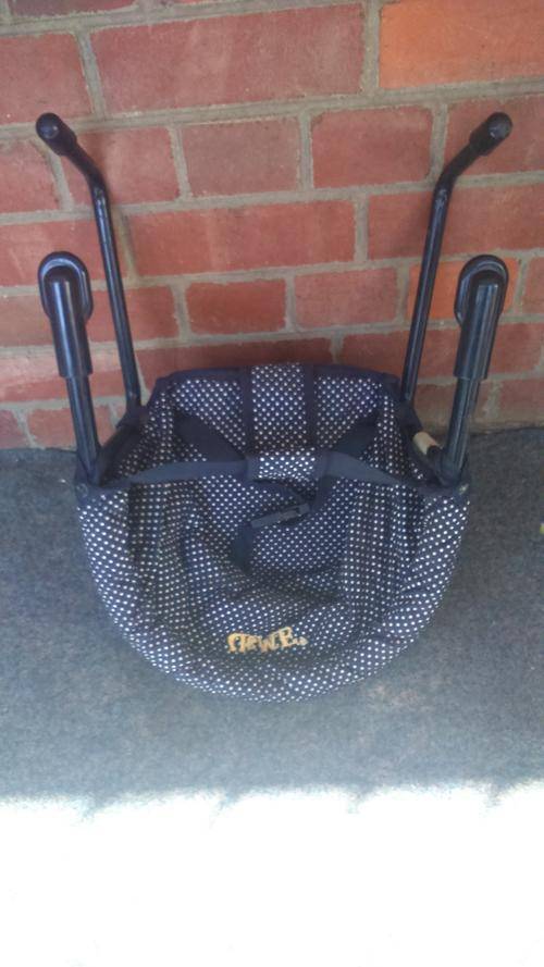Clip on seat, in excellent condition. Folds flat for easy storage. Clips on to a level table for little one to join the family at the dinner table.
