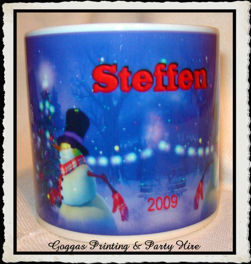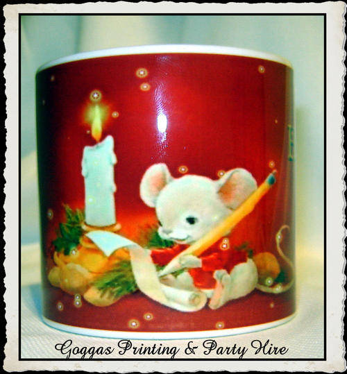 We can print any picture and wording onto the mug, the photo's are just samples that we have made before.