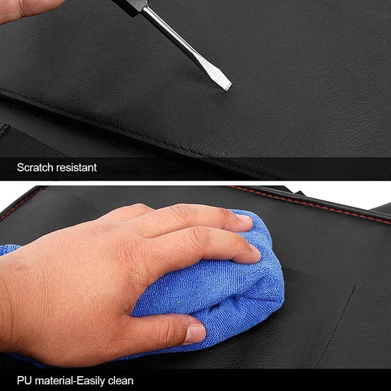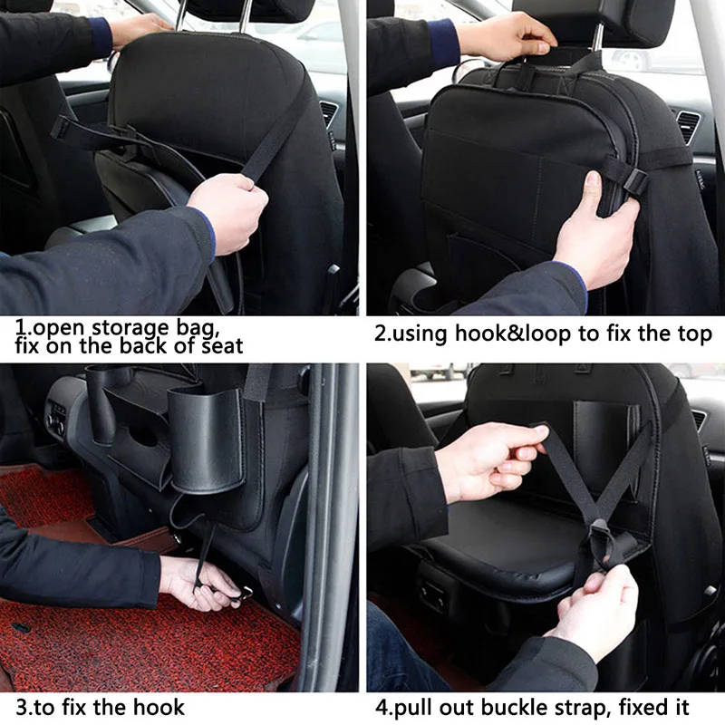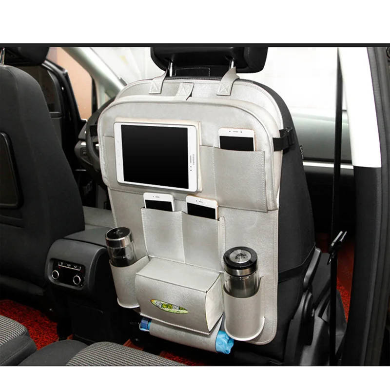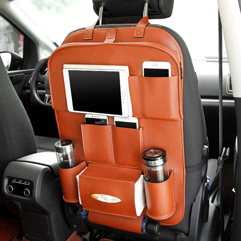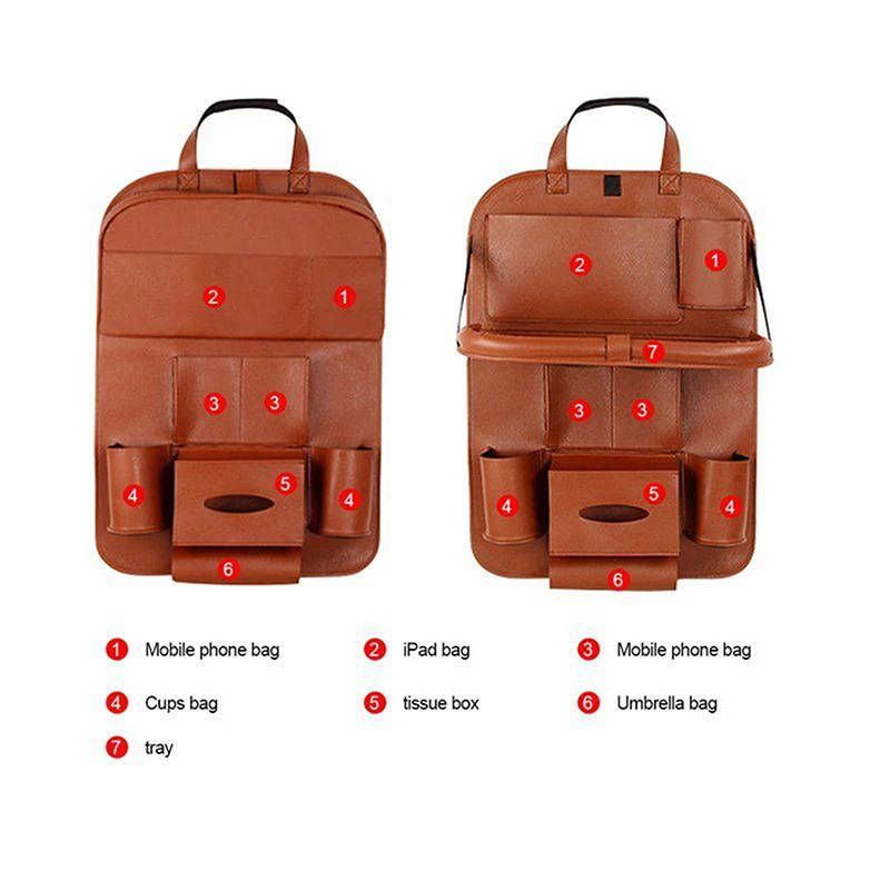 Brand: This is a car seat storage bag which is made of leather. Suitable for hold food,drink, umbrella Multiple partitions, large capacity,Store items, save space Solid color, integration with car seat color With Safe buckle, Avoid falling This bag has handle which can be convenient to carry and can be hang on the car seat. It is also suitable for pinic, travel and outdoors. Specification : Material : Leather Color : Black, Brown, Off white, Gray, Wine Red Size: (L)X(W)58X41cm/22.83''X16.14''(appr.) Package Includes : 1 x Leather Car Storage Bag