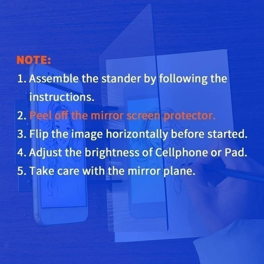 -Make sure to mirror the image on your mobile phone or tablet before drawing, otherwise you will find that the image projected is inverse.
