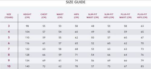 UK boys 3-10 years old size chart: