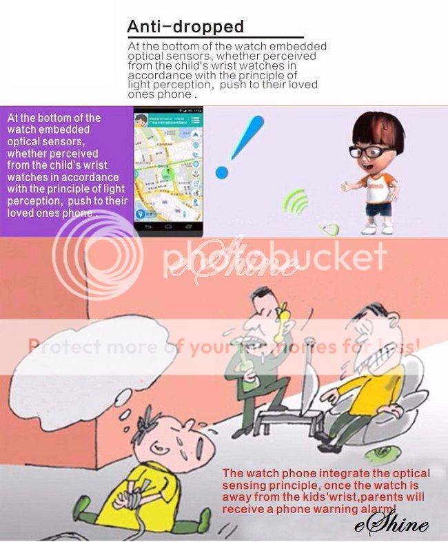 b. Kids can press SOS or familiarity number button to call you! b. SOS remind c. Take off watch If you set the telephone number in the APP's "SMS alerts setting", you will received a message when occur the above 3 conditions. | Kids Smart Watch Phone GPS LBS Double Location Tracker Safe Anti-lost Watch ![]() ![]() ![]() ![]() ![]() ![]() ![]() ![]() |