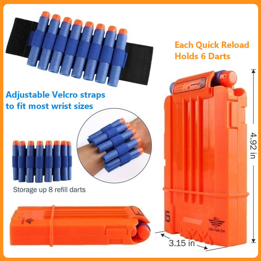 3. Quick Reload Clips Quick Reload Clips work with all N-Strike Elite blasters and most original N-Strike blasters. No more worry about running out of darts during the game.