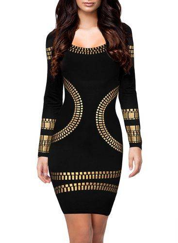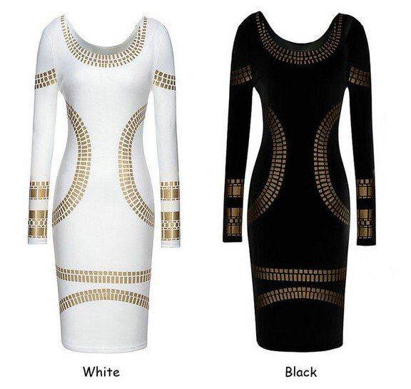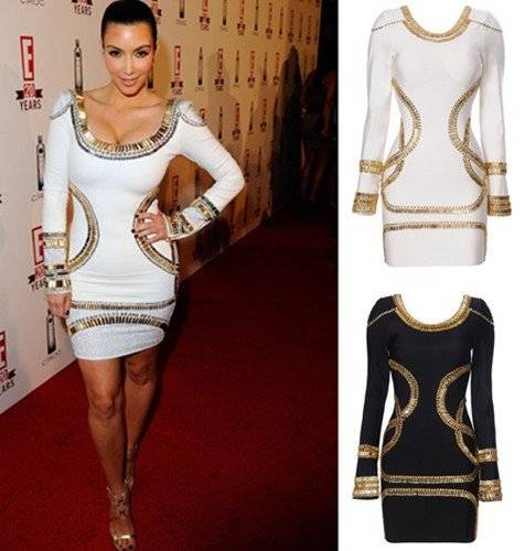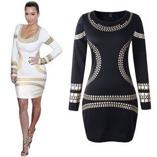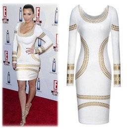 Kim Kardashian Women Bronzier Print Long Sleeve Sexy Bodycon Pencil Celebrity Dresses