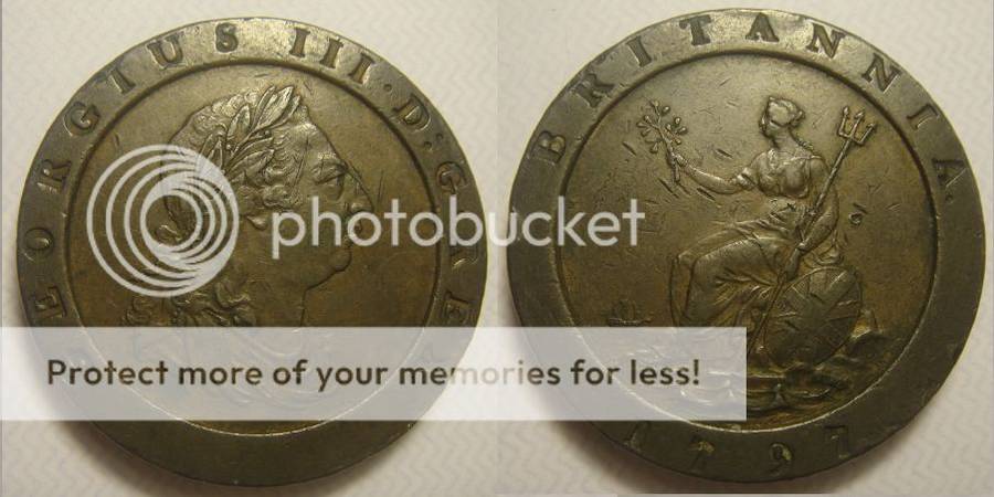 King George III DOUBLE Cartwheel Penny of 1797 in Extremely Fine condition