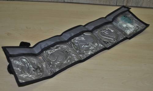 Kingfisher Sail Pouch with variety of traces, Mustad hooks, a Lure, Lead sinkers, and more