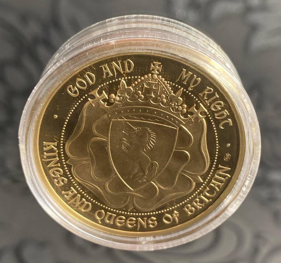 Struck in proof quality and gold-plated, it features intricate details honouring the legacy of Britains kings and queens.