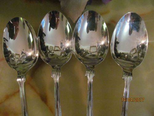 SET OF FOUR COLLECTABLE VINTAGE SILVER PLATED DESSERT SPOONS -- EACH WITH KINGS PATTERN HANDLES