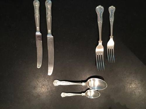 consists of 6 x large knives, 6 x smaller knives, 6 x large forks and 6 x smaller forks, 6 x desert spoons, 6 x teaspoons and 2 large serving spoons.
