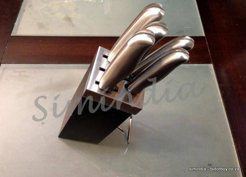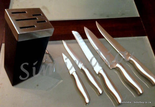 Kitchen Confidential - 6 PC STAINLESS STEEL KNIFE SET including WOODEN BLOCK