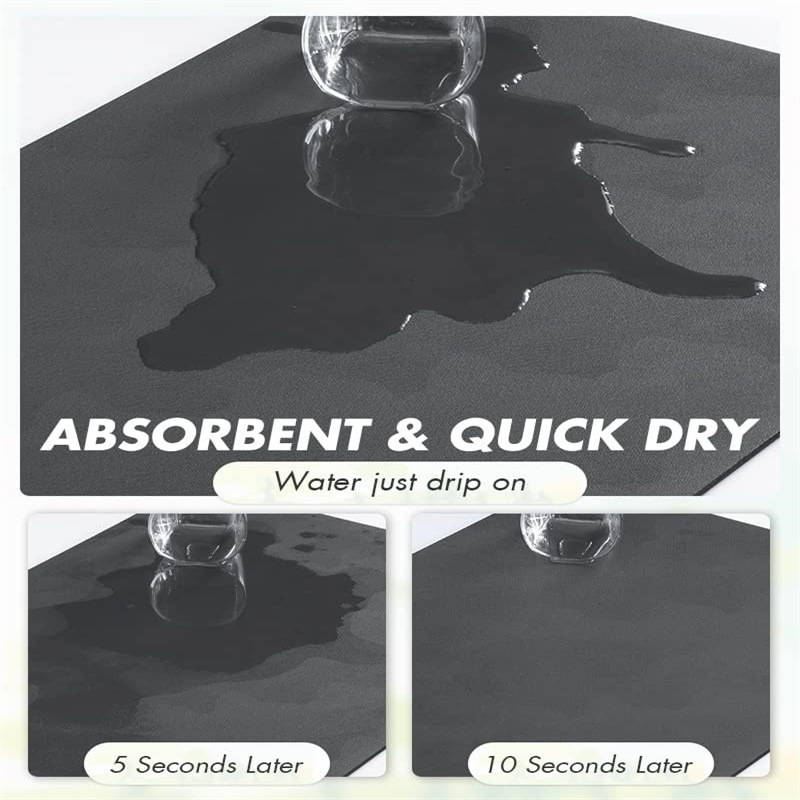 Kitchen Counter Dish Drying Mat, Heat-Resistant and Super Absorbent Drainer Pad with Non-Slip Rubber Backing, Stain-Hiding Design for Restaurant/Cafe Use, Compatible with Various Countertops