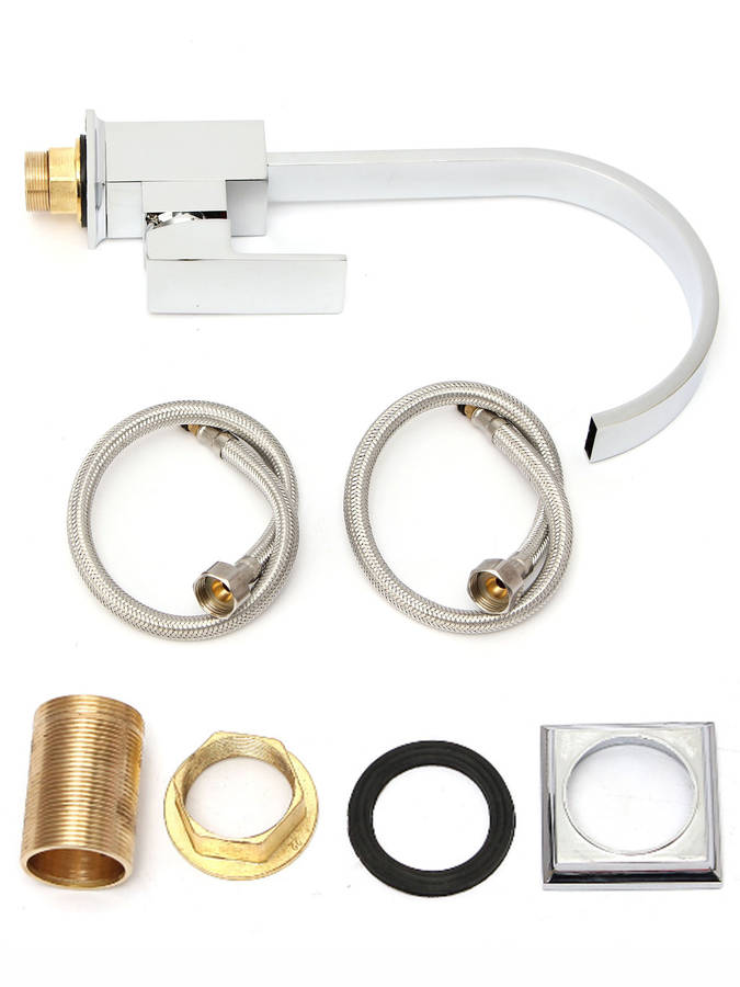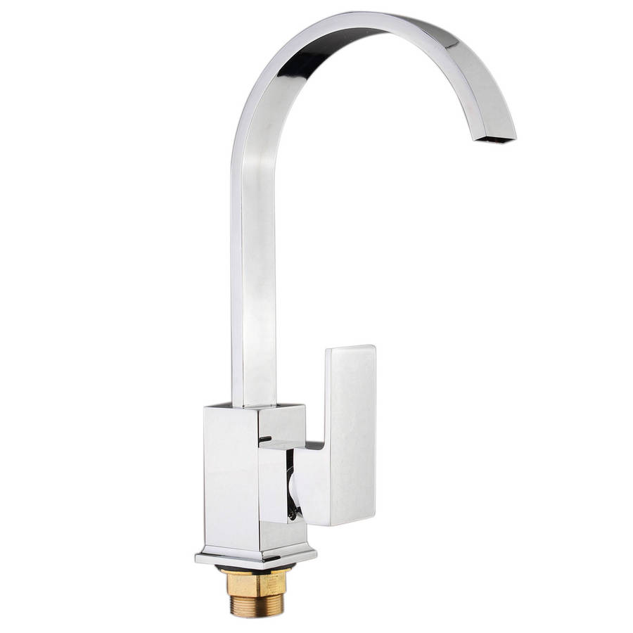 Kitchen Sink Faucet Mixer Tap Swivel Spout Chrome Brass Square Single Lever Mono