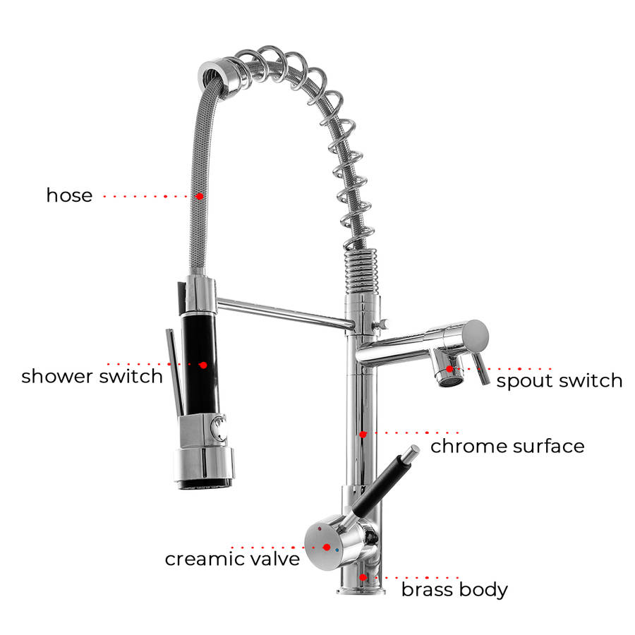 - Quality ABS spout head with extension hose can be pulled out and makes cleaning easier.