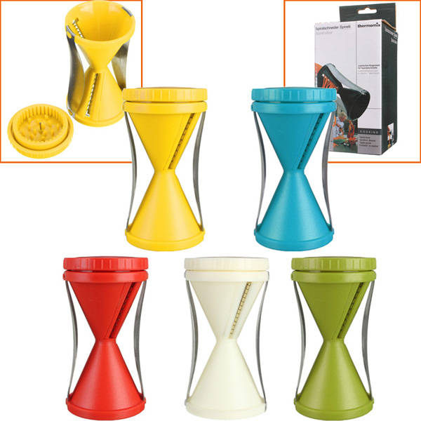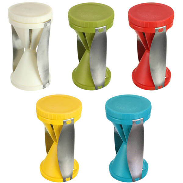 Description: Kitchen Spiral Shred Veggies Cutter Stainless Steel Fruit Vegetable Slicer With this spiral slicer you can conjure up endless julienne strips of carrot, radish, cucumber and all kinds of other firm vegetables. The slicer is perfect to create vegetable or pasta dishes, which is also great for garnishes, plating and decorating serving dishes. Specifications: Material: Plastic (LEAD-FREE) Color: Red, Yellow, Green, Blue, White Size: 7*12 cm Package Included: 1 x Vegetable Spiral Slicer