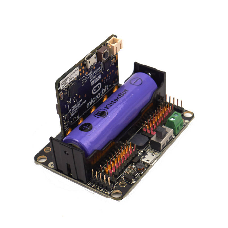Functional parameters: -18650 battery voltage: 3.7V -USB input voltage: 5V -VM pin max ouput: 1A (with onboard battery) -External Voltage Input (the green termial): 5V (only supports 5V input, do not connect over 5V, maximum current supports 3A) -Supported software: -Available Coding platform: Kittenblock(based on Scratch3.0) or Makecode and python(Mu editor in microbit mode)