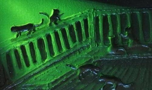 Kittens Playing on the Deck. Night time Art. 300 x 410 x 20. Stretched Boxed Canvas By Jane Flowers