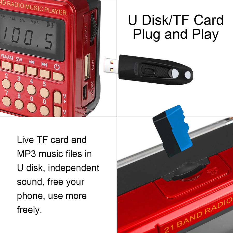 KK-62 Portable Retro Radio LED Display Speaker MP3 Player FM Radio TF Card U Disk AU... (COLOR: RED)