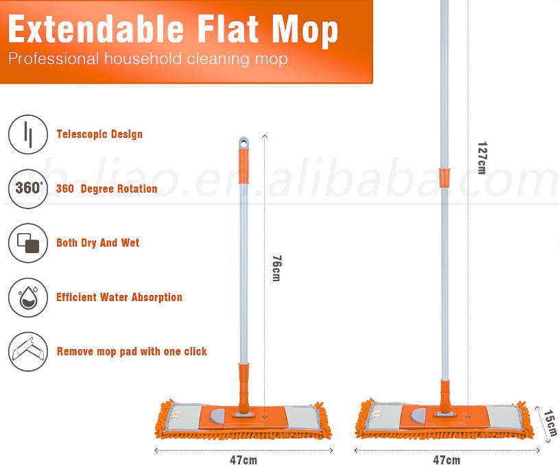 -Description: Kleaner Microfiber Extendable Flat Mop