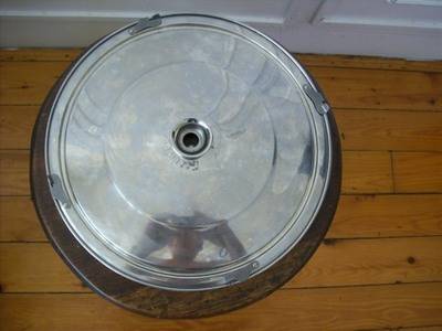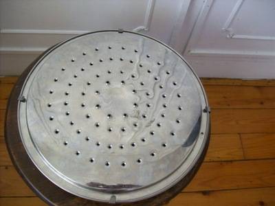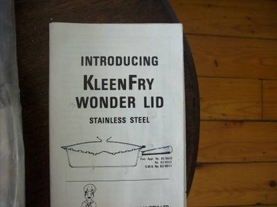 A kleen fry wonder lid. This lid is made of stainless steel, it has a dia of 300mm, it is made to fit over the top of the pan and obviates splashing you can also top it up via the spout opening on the lid. This item is in very good condition.